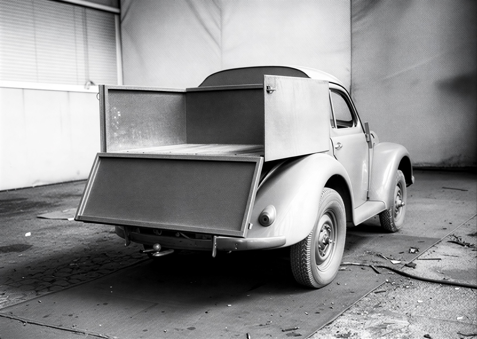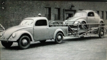 Идея адаптировать базовую платформу KdF/VW для перевозки грузов вместо людей вовсе не была новой. Большинство фанатов VW знают о Plattenwagen — грубых заводских «тягачах», построенных на шасси Beetle самими рабочими, просто чтобы помогать с работой на фабрике. По сути, это были своеобразные «обратные пикапы» с грузовой платформой спереди.