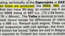 Он был создан в единственном экземпляре и получил название Yalta 1000. Как было написано в статье Autocar от 4 июля 1968 года: «Yalta выглядит аналогично [прим. ред., обычному ЗАЗ-966], в её основе та же самая конструкция, за исключением разницы в отделке, но оснащается автомобиль двигателем Renault объёмом 986 куб.см».