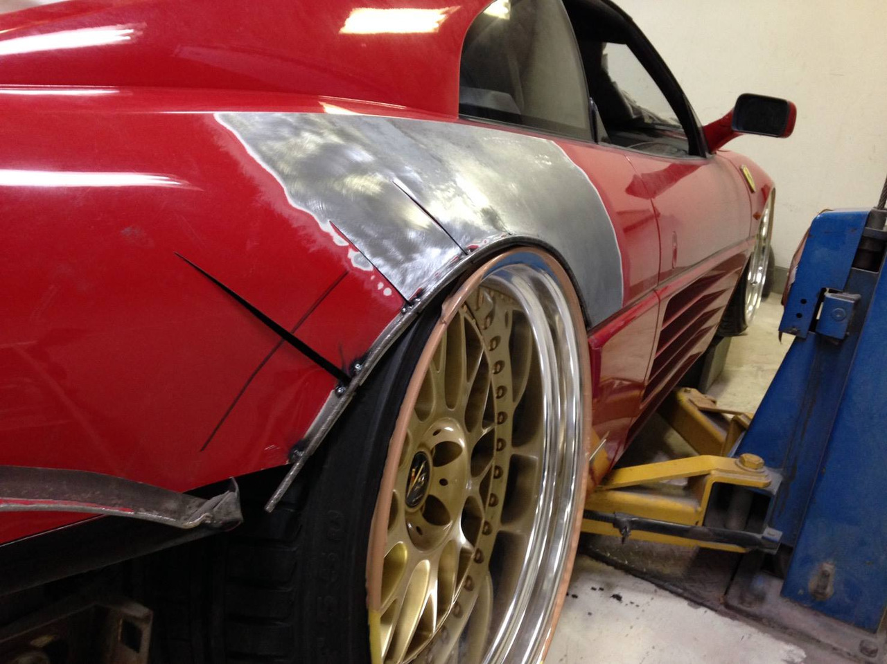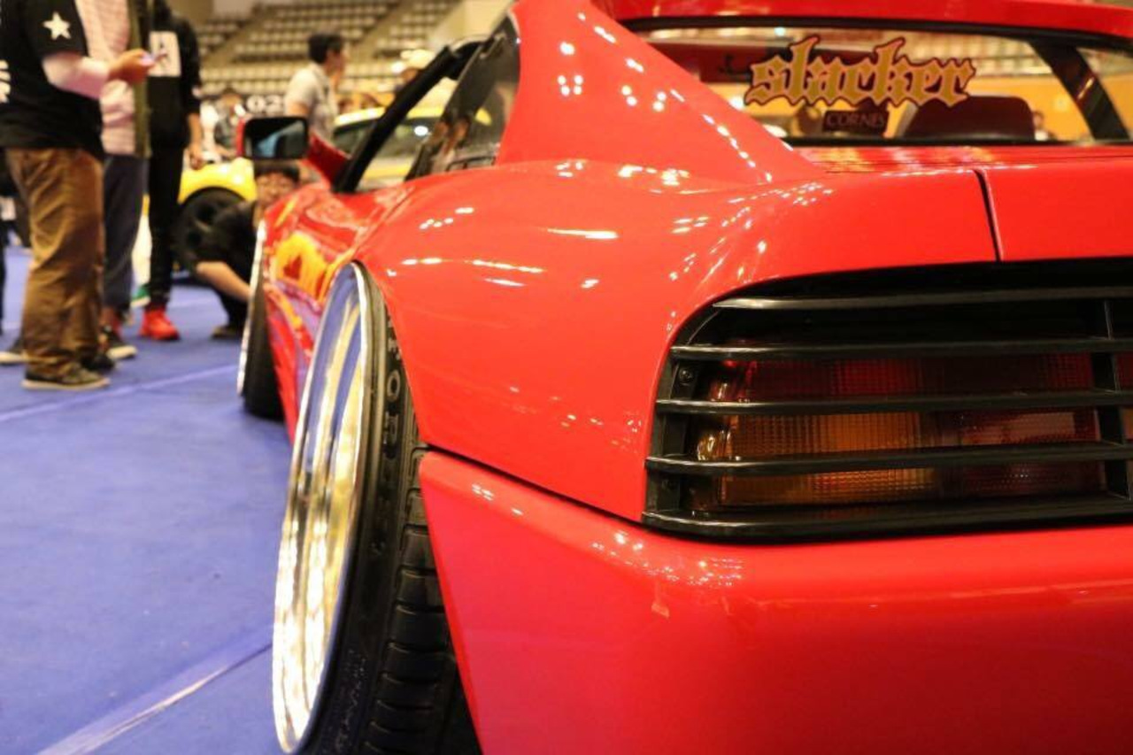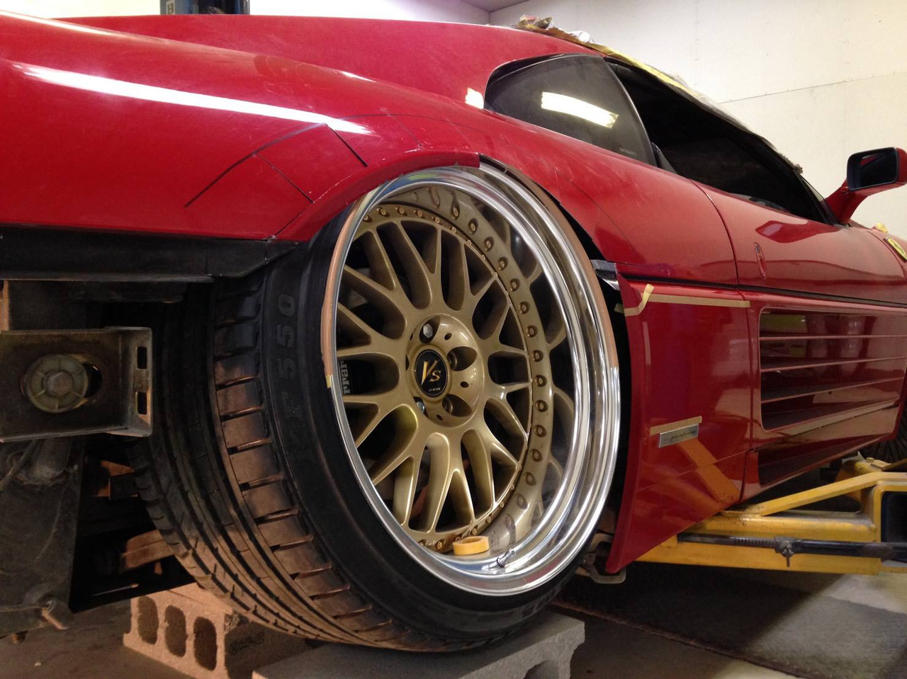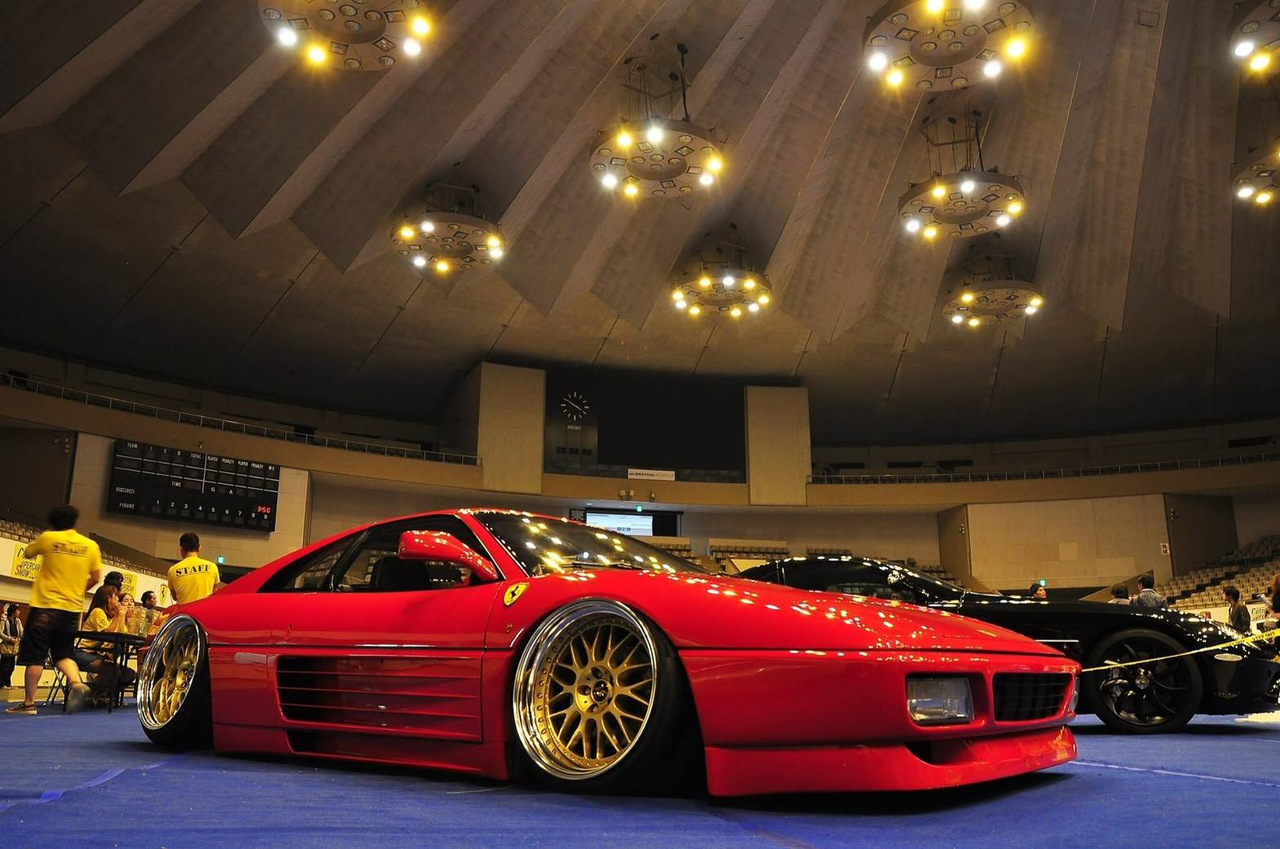 Время, в которое мы живём, легко можно назвать эрой заниженных машин. Их популярность только растёт, и как именитые тюнеры, так и обычные автовладельцы, стараются «занизить» любой автомобиль, что попадётся им под руку. Особенно популярна эта тема в Японии, там вы можете увидеть заниженными самые разные автомобили. Японское ателье FERS.CRU захотели удивить общественность и поработали над Ferrari 348. Заднеприводный спорткар с двигателем V8 – довольно неплохой материал для работы, к тому же вполне приемлимый по цене, особенно если сравнить с другими подобными автомобилями. Основной задачей у них, конечно же, было сделать автомобиль как можно «ближе к земле». И нужно сказать, у них получилось. Клиренс настолько мал, что практически не остаётся просвета. К счастью, автомобиль оснащён пневмоподвеской и после показа и фотосессий, его можно вернуть в более приемлимый хоть для какой-то поездки вид. Основная работа над спорткаром состояла в расширении колёсных арок таким образом, чтобы колёса под них заходили.