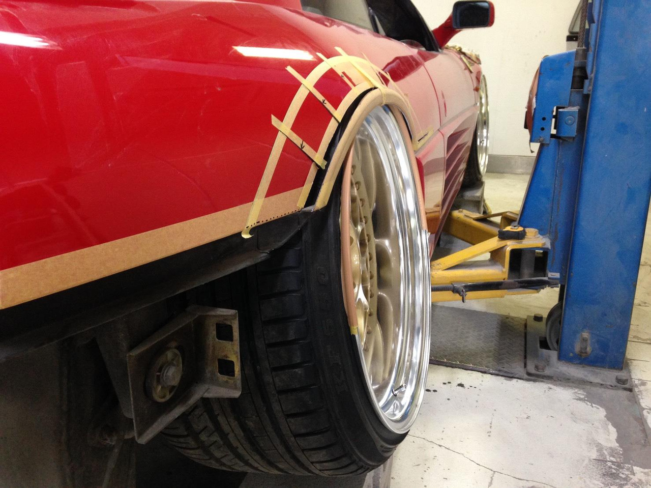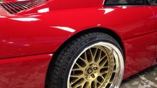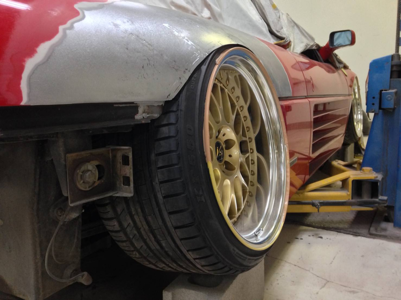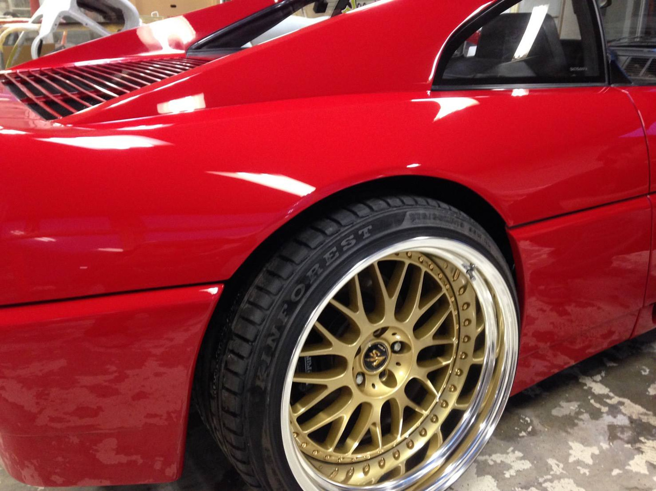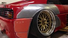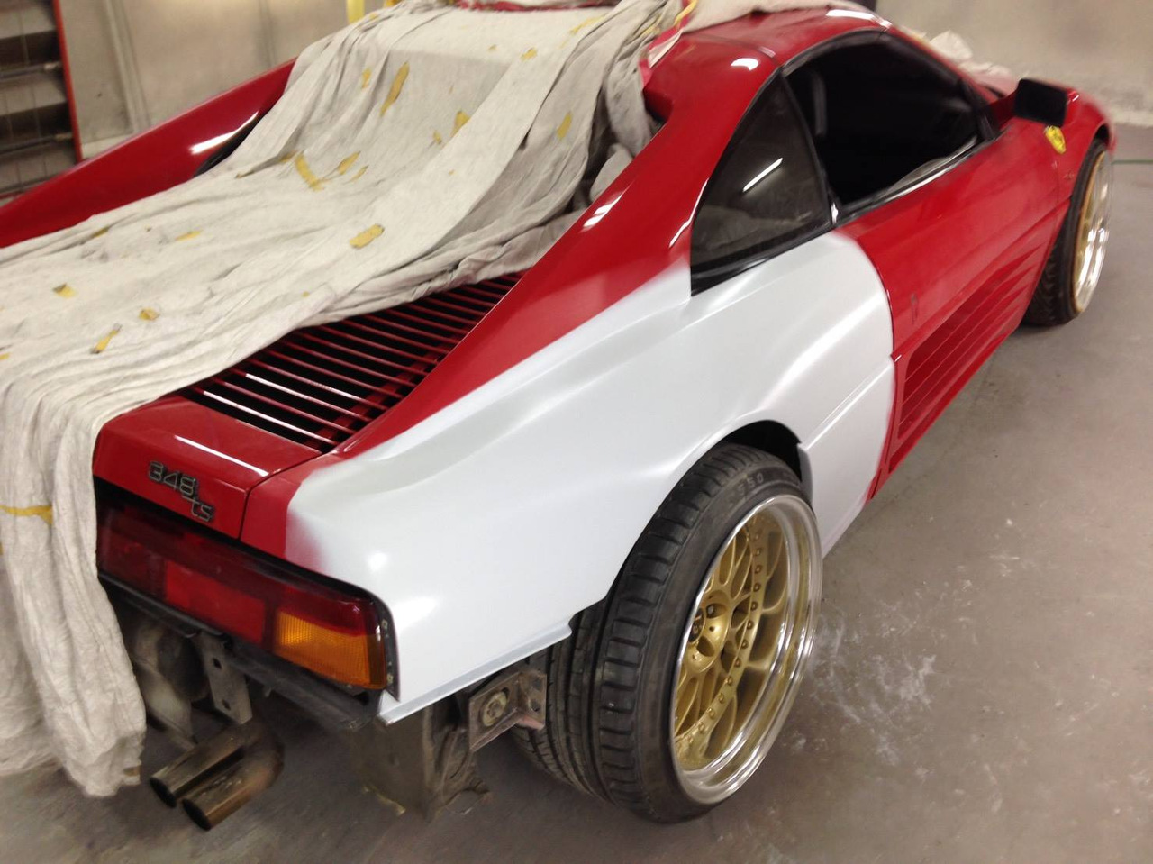 Время, в которое мы живём, легко можно назвать эрой заниженных машин. Их популярность только растёт, и как именитые тюнеры, так и обычные автовладельцы, стараются «занизить» любой автомобиль, что попадётся им под руку. Особенно популярна эта тема в Японии, там вы можете увидеть заниженными самые разные автомобили. Японское ателье FERS.CRU захотели удивить общественность и поработали над Ferrari 348. Заднеприводный спорткар с двигателем V8 – довольно неплохой материал для работы, к тому же вполне приемлимый по цене, особенно если сравнить с другими подобными автомобилями. Основной задачей у них, конечно же, было сделать автомобиль как можно «ближе к земле». И нужно сказать, у них получилось. Клиренс настолько мал, что практически не остаётся просвета. К счастью, автомобиль оснащён пневмоподвеской и после показа и фотосессий, его можно вернуть в более приемлимый хоть для какой-то поездки вид. Основная работа над спорткаром состояла в расширении колёсных арок таким образом, чтобы колёса под них заходили.
