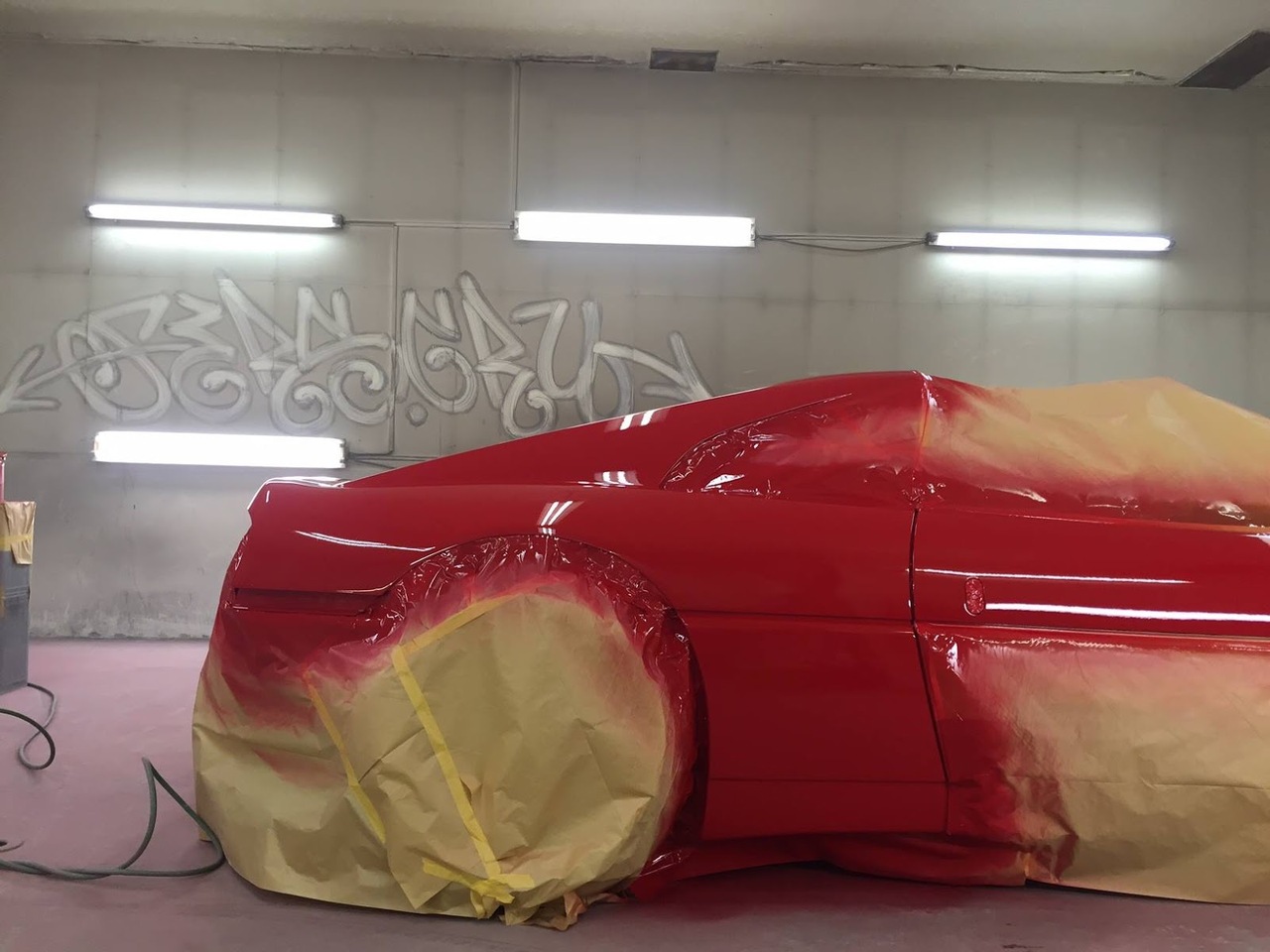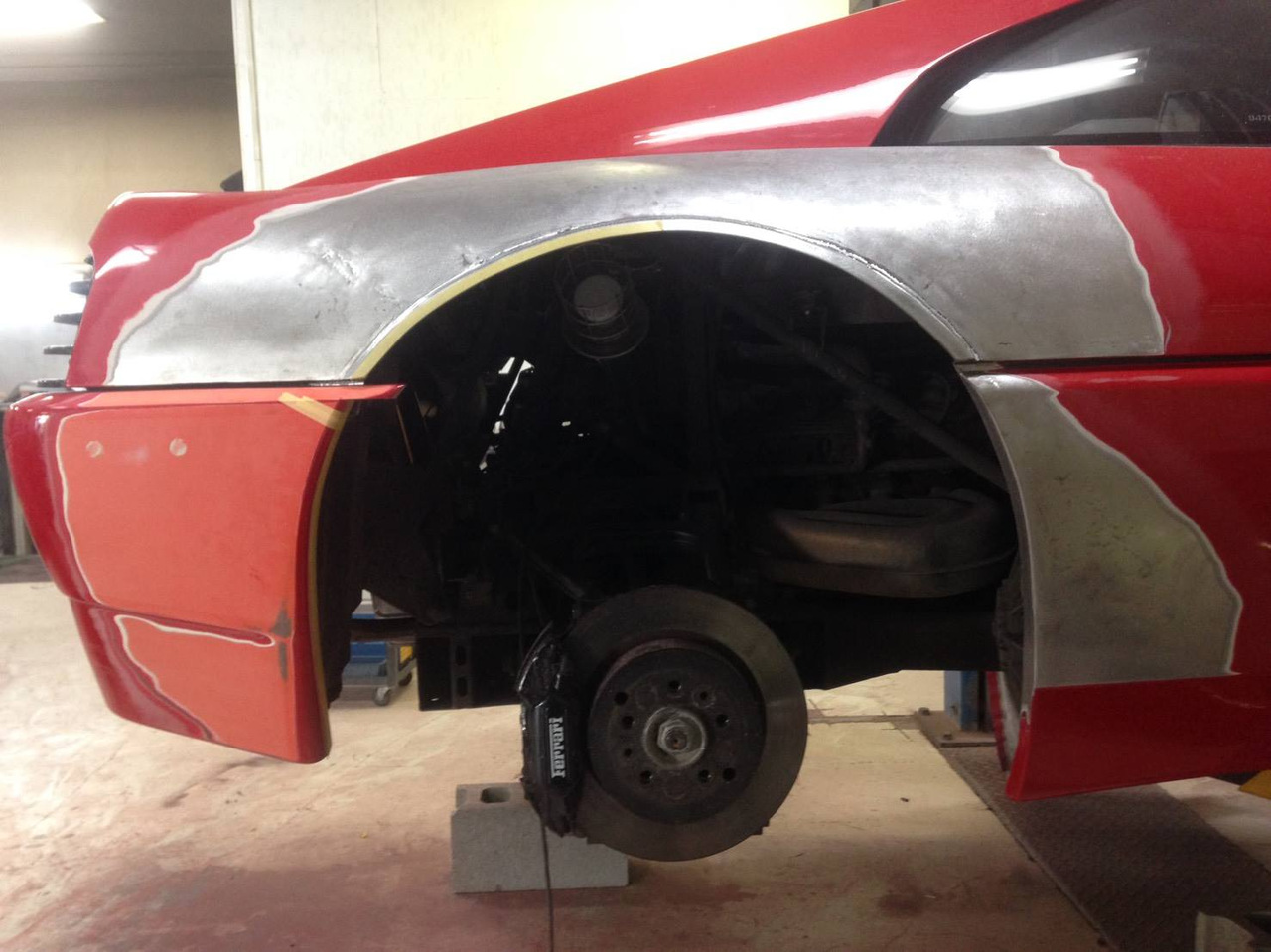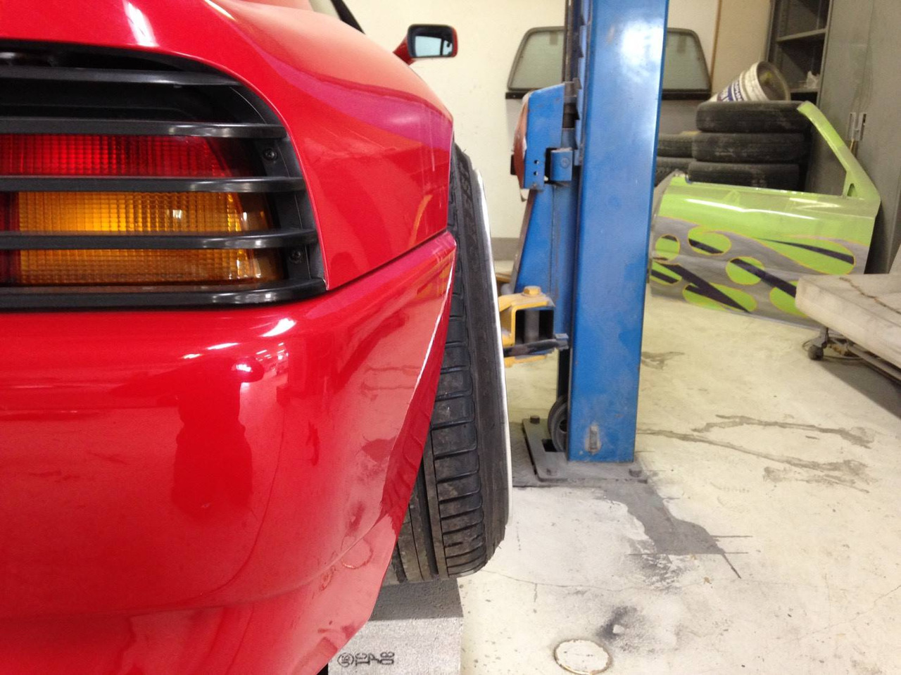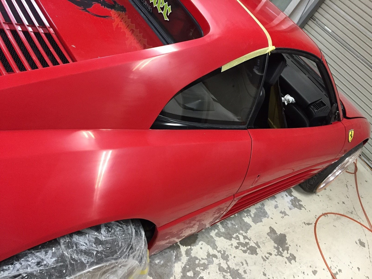 Время, в которое мы живём, легко можно назвать эрой заниженных машин. Их популярность только растёт, и как именитые тюнеры, так и обычные автовладельцы, стараются «занизить» любой автомобиль, что попадётся им под руку. Особенно популярна эта тема в Японии, там вы можете увидеть заниженными самые разные автомобили. Японское ателье FERS.CRU захотели удивить общественность и поработали над Ferrari 348. Заднеприводный спорткар с двигателем V8 – довольно неплохой материал для работы, к тому же вполне приемлимый по цене, особенно если сравнить с другими подобными автомобилями. Основной задачей у них, конечно же, было сделать автомобиль как можно «ближе к земле». И нужно сказать, у них получилось. Клиренс настолько мал, что практически не остаётся просвета. К счастью, автомобиль оснащён пневмоподвеской и после показа и фотосессий, его можно вернуть в более приемлимый хоть для какой-то поездки вид. Основная работа над спорткаром состояла в расширении колёсных арок таким образом, чтобы колёса под них заходили.