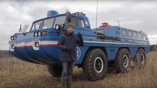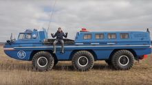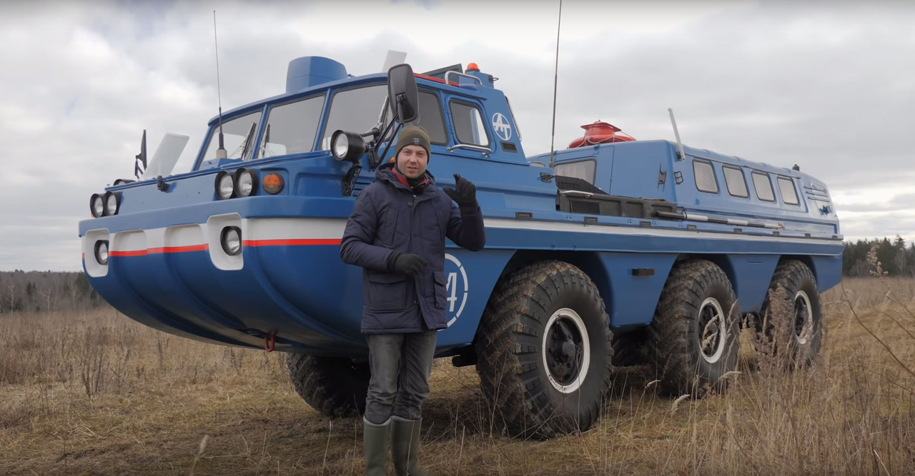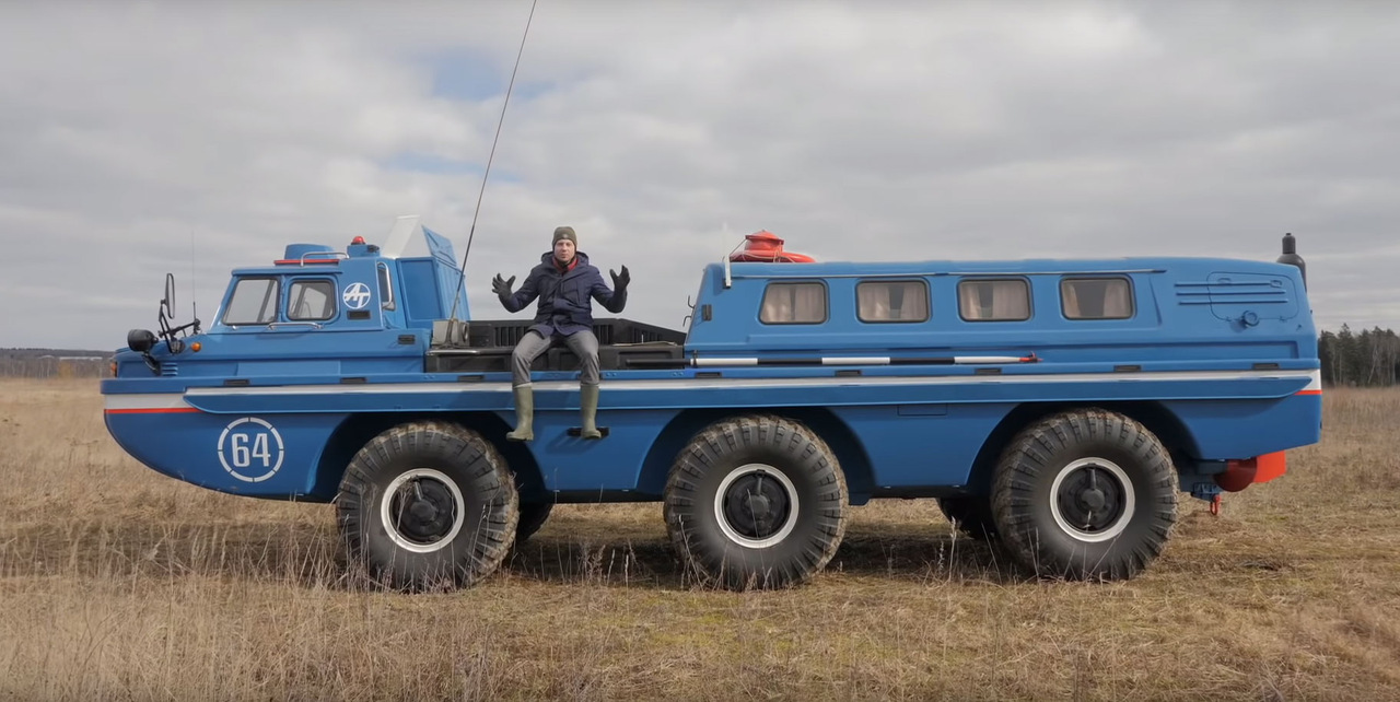 Передние и задние колеса поворачиваются в разные стороны для того, чтобы они всегда двигались по одной колее. В качестве двигателя на этом экземпляре 1985 года выпуска установлен совершенно серийный силовой агрегат от грузовика ЗИЛ-130. Это бензиновый карбюраторный V8 мощностью 150 л.с.