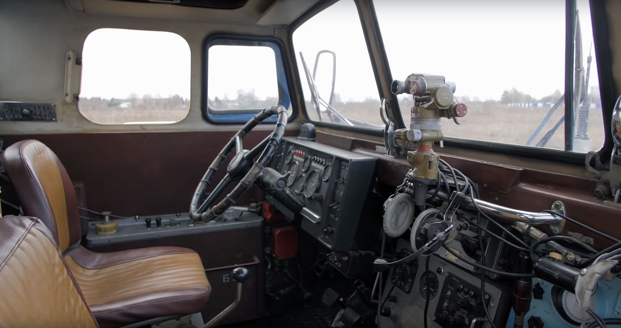 Попасть в кабину водителя можно исключительно через один из двух люков, расположенных в крыше. По невероятному количеству приборов и аппаратуры кабина «Синей Птицы» напоминает советский самолет.