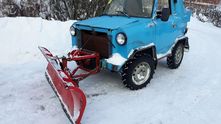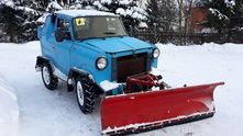 Продавец не рассказал, какой автомобиль лежит в основе самоделки, но что-то мне подсказывает, что рама тут самодельная. Уж очень короткая колесная база. Такой нет ни у одного серийного советского и российского автомобиля. Спереди установлен отвал для уборки снега с механическим приводом - довольно простая конструкция. За подъем отвечает лебедка.