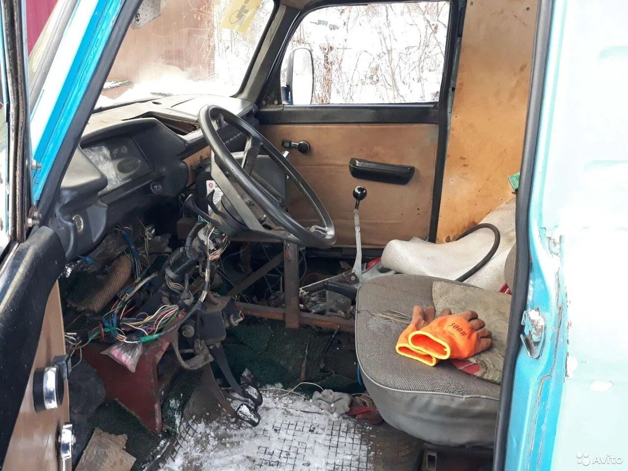 Салон практически полностью соответствует «Москвичу», за исключением того, что под передней панелью творится полнейший беспорядок, а единственное кресло водителя сдвинуто куда-то далеко назад. Кроме этого я что-то не вижу рычагов управления раздаточной коробкой. Предположу, что она работает в единственном режиме.