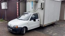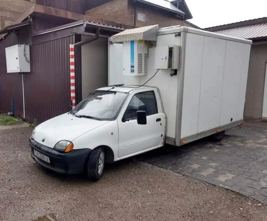 Крохотный Fiat Seicento решил, что он настоящий грузовик-рефрижиратор. Кто-то установил кузов и холодильную установку гигантских размеров. Боже...