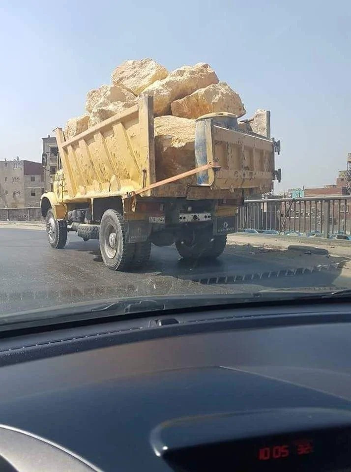 Бедный самосвал явно идет с перегрузом. Представляете, сколько может весить один такой камешек? А он везет их с горкой. Вот это выносливость старой техники!