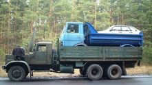 КрАЗ, который везет МАЗ, который везет ВАЗ. Интересно, сможет ли уже немолодой грузовик увезти такой тяжелый груз? Скорее всего - без проблем, если водитель починит двигатель!