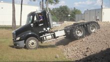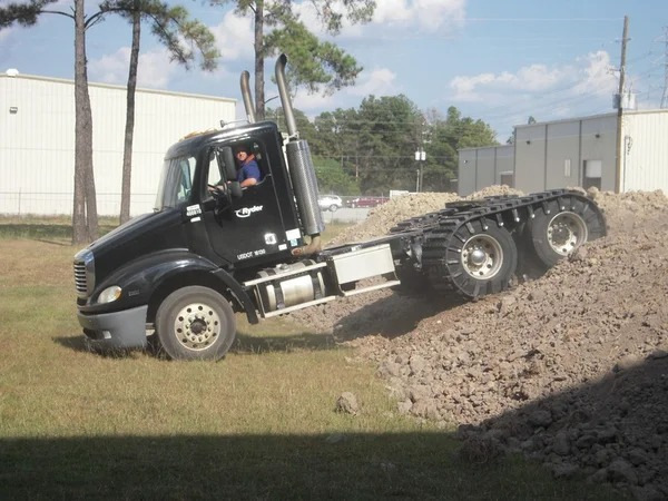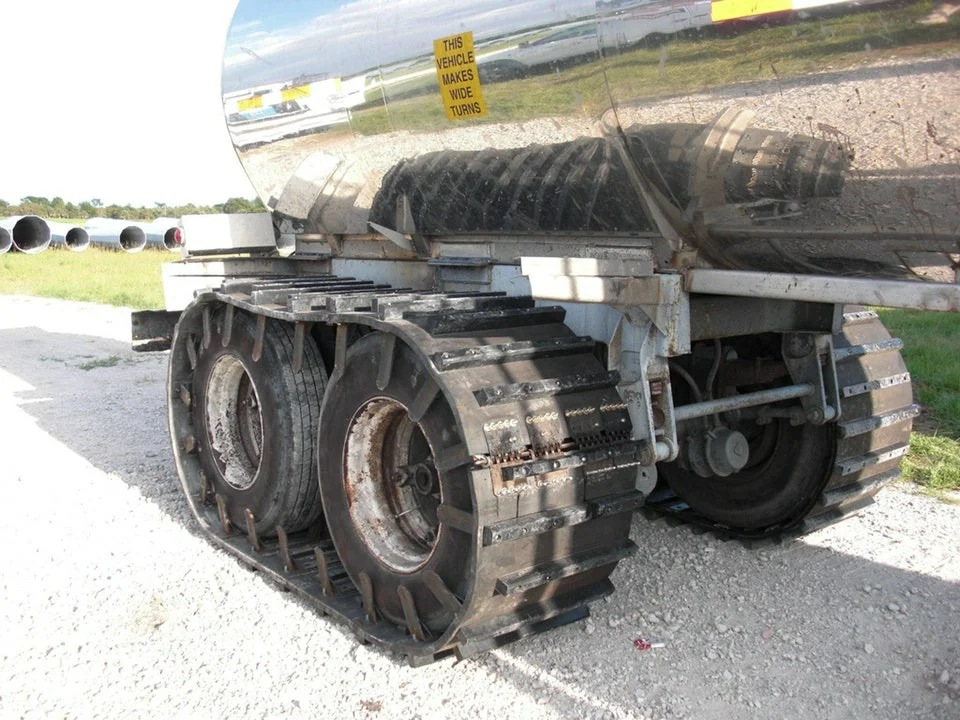 Вот это крутая штука! Резиновые гусеницы надеваются на колеса любого тягача и обеспечивают просто феноменальную проходимость. Хотели бы себе на грузовик в зимнее время?