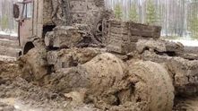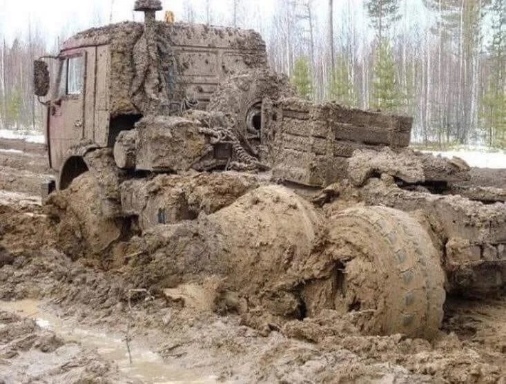 Весной некоторые российские дороги выглядят именно так. Пара километров по такой, и ваш грузовик будет похож на этот КамАЗ.