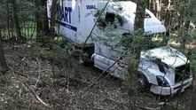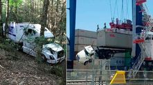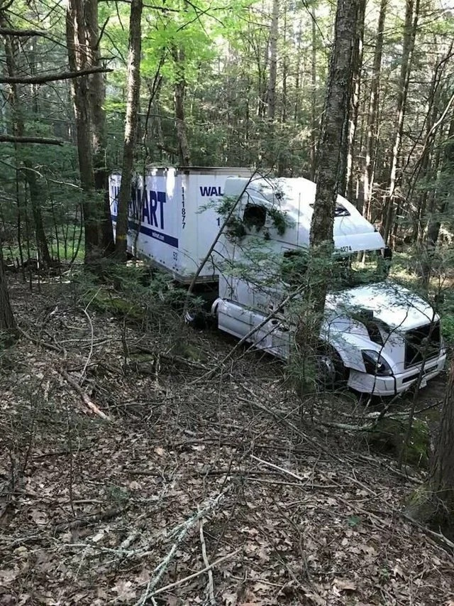 "Где-то тут должен быть Walmart! Я еду по навигатору". Как-то иначе объяснить что делает фура в глухом лесу невозможно. Возможно водитель искал дорогу или объезд и заблудился? В любом случае, кажется, что без помощников ему отсюда не выбраться...