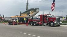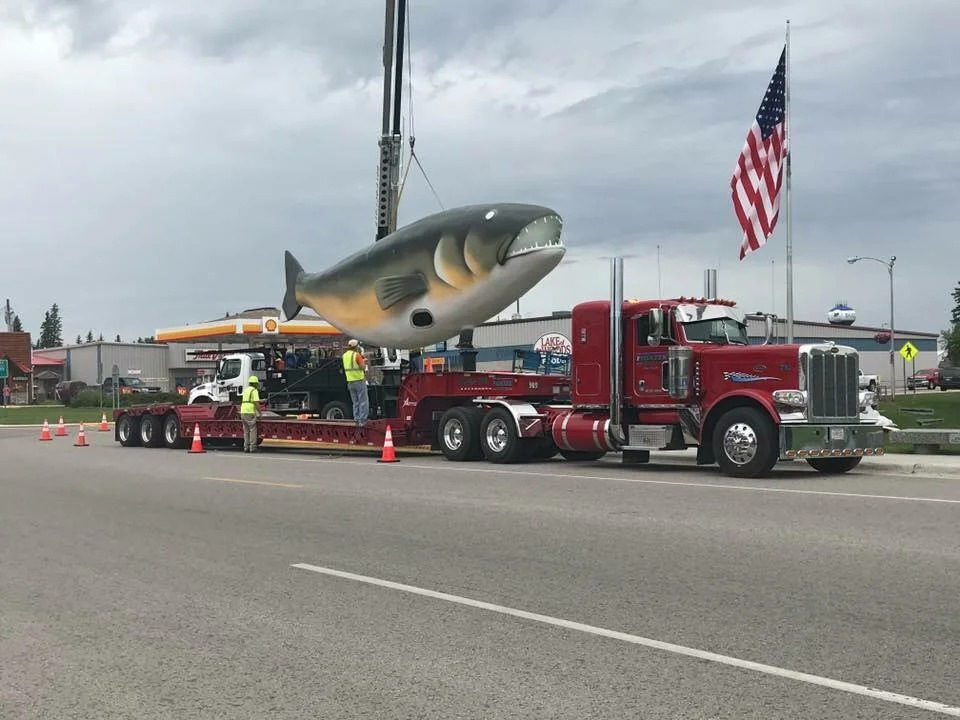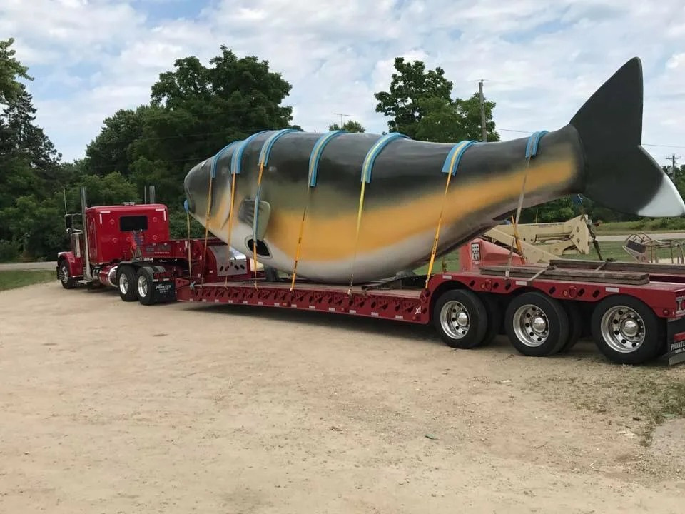 Если вы заядлый рыбак и дальнобойщик, то мы нашли для вас идеальный груз. Это точно самая большая рыба, которую когда-либо кто-либо перевозил. Скорее всего, её сделали для какого-то парка развлечения, а может установят во дворе какого-нибудь безумного мажора. Но вы только представьте, сколько внимания собрал этот грузовик во время перевозки!
