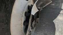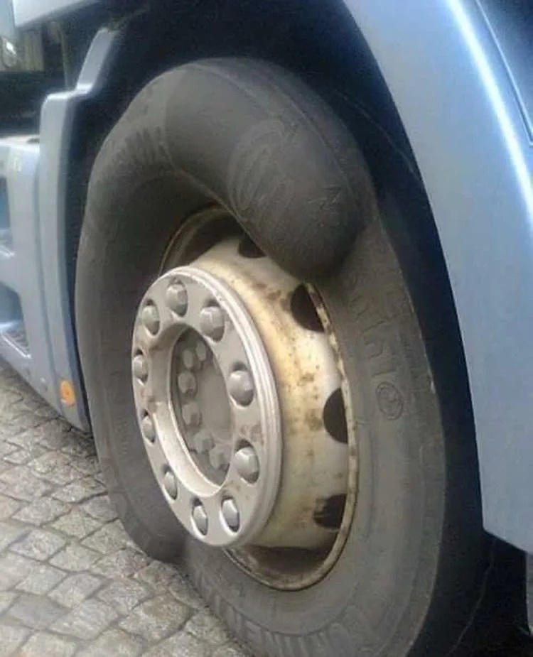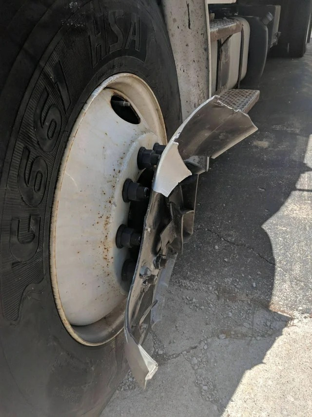 Думаете, что же такое застряло на колесе грузовика? А я вам скажу: это часть бампера легкового автомобиля! Он засел настолько плотно после небольшого ДТП, что водителю грузовика пришлось ехать в сервис для ремонта.