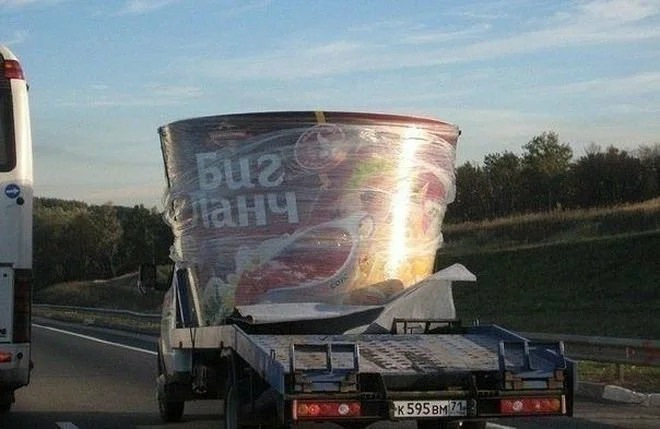 О да! Биг Ланч, наконец-то, действительно стал большим! Водителю эвакуатора достался очень необычный и забавный груз. Уверен, что он привлек немало внимание во время своей поездки.