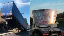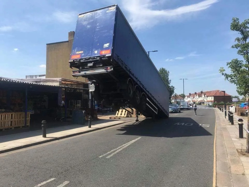 А вы говорили фотошоп, когда мы публиковали подобное положение трейлера в прошлый раз. Как мы и объясняли, такое может произойти, если тяжелый груз смещается в переднюю часть полуприцепа, задирая весь задок.