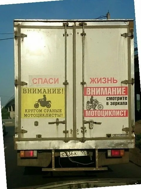 Это буквально крик души водителя фургона. Действительно, мотоциклисты уже всех достали. Часто они передвигаются по дорогам совершенно бездумно, даже не подозревая, что водители грузовиков их просто могут не видеть!