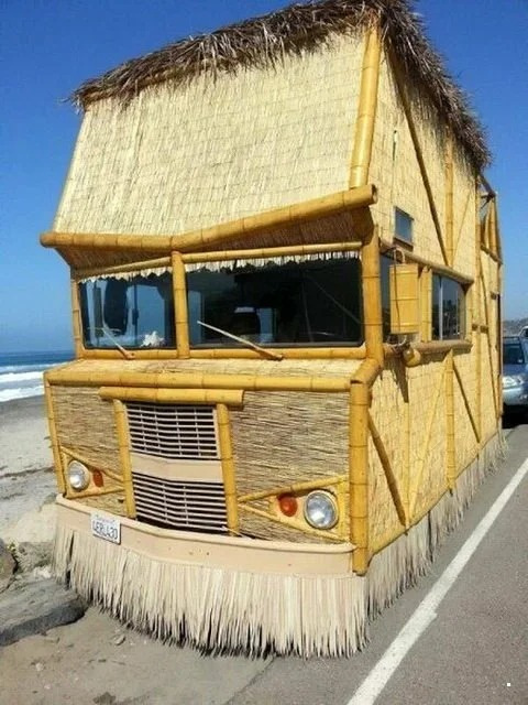 Не совсем грузовик, но в подборку подойдет идеально из-за своих размеров. Это старенький американский кемпер, который получил отделку натуральным бамбуком! Посмотрите, как же это мило смотрится!