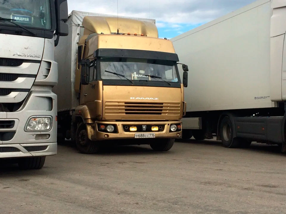Интересно выглядит верхний и боковые обтекатели кабины. Номера - Республики Татарстан. И вот в чем вопрос: откуда на этом КамАЗе детали от перспективных моделей грузовиков?