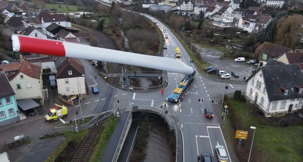 Захватывающие фотографии перевозки огромной лопасти ветряной турбины