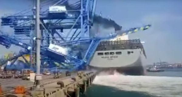 Посмотрите, как огромный контейнеровоз устроил хаос в южнокорейском порту