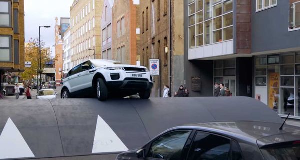 Удачный рекламный трюк - Range Rover Evoque проезжает самый большой в мире лежачий полицейский