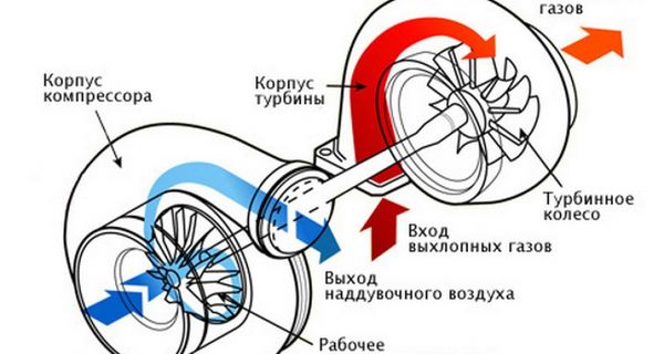 Как устроена турбина Устройство системы турбонаддува очень простое. Турбина устанавливается на выпускной коллектор двигателя. Выхопные газы из...