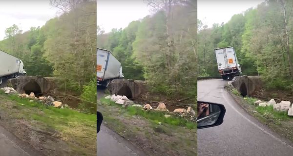 Горе-дальнобойщик чуть не перевернул свой грузовик на узком мосту