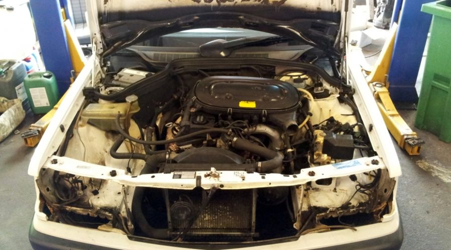 Motorn r ur och all el r borta. Lyckades ven koppla isr abs med vrig el, s nu blir snyggt i motorutrymmet ; Har dock en del rost att fixa innan det...