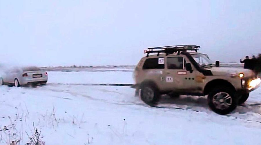 Старый Audi S6 уничтожает Lada Niva в перетягивании троса