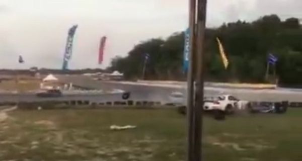 На гонке Wallerfield International Raceway Mazda RX-7 улетел в толпу